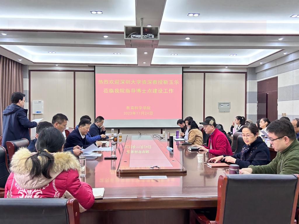 时间:2023-11-24 16:58:24 来源:太阳集团tyc539 作者: 阅读: 次11月24日上午,应太阳集团tyc539邀请,深圳大学靳玉乐教授在教科楼402会议室指导博士点建设工作。公司领导班子成员及教育学全体教师参加了此次座谈会,会议由该院经理何安明主持。