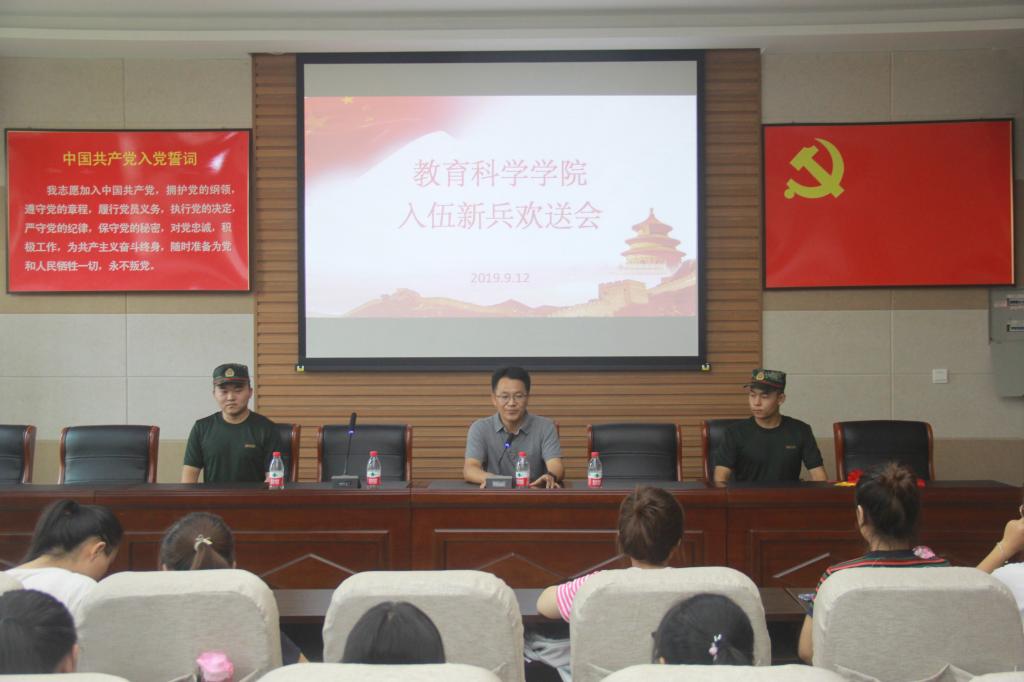 时间:2019-09-13 20:45:41 来源:太阳集团tyc539 作者: 阅读: 次9月12日,太阳集团tyc539在教科楼301会议室召开新兵入伍欢送会,公司党委副书记李贵杰,班主任朱方,任课老师朱欲晓,2018级心理学班、学前教育一班同学参加了欢送会。