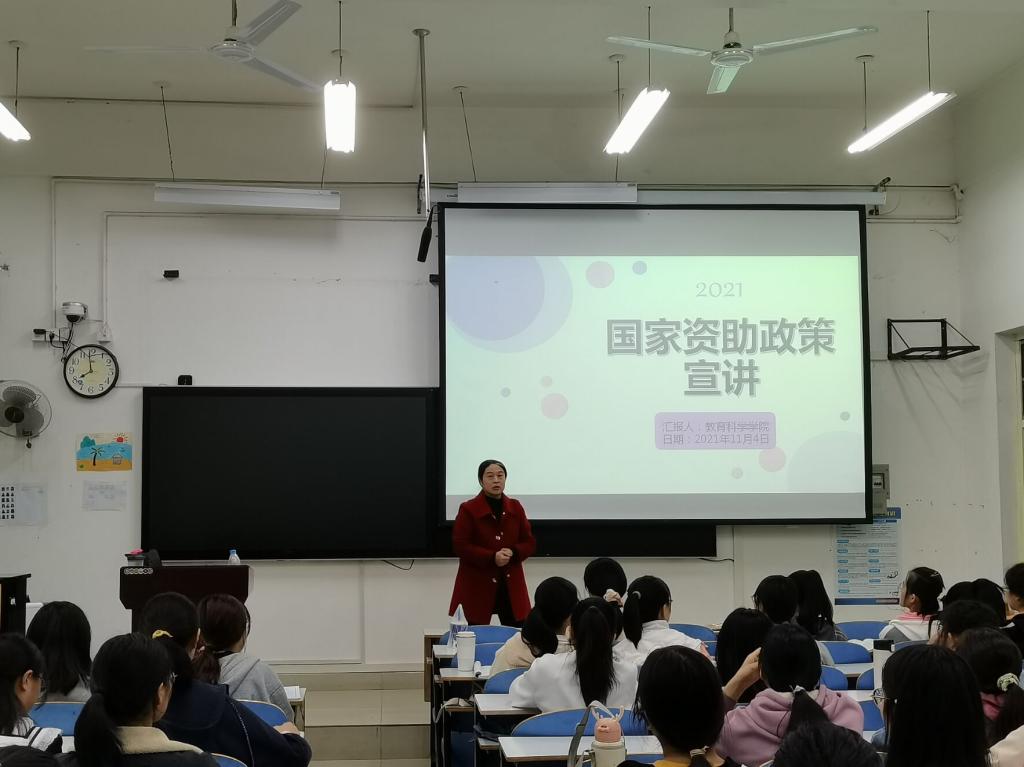 时间:2021-11-04 20:53:14 来源:太阳集团tyc539太阳集团tyc539新闻部 作者:马玉娇 刘至涵 阅读: 次11月4日,太阳集团tyc5392021级新生各班在教科楼108、201、203、204教室分别组织召开新生资助政策宣讲会,班主任张纪娥、吴康、冯靖雯、王蓉以及2021级全体同学参与此次宣讲会。