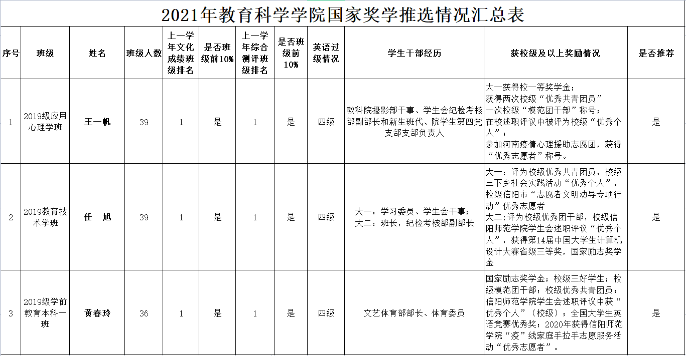附:2021年太阳集团tyc539国家奖学金推选情况汇总表