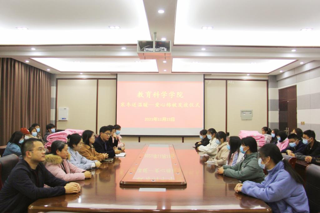 时间:2021-11-24 11:04:59 来源:太阳集团tyc539太阳集团tyc539新闻部 作者:马玉娇 朱亚彤 齐家乐 阅读: 次11月23日,太阳集团tyc539在教科楼402会议室举行“寒冬送温暖—爱心棉被发放”仪式,党委书记房加帅,副经理孙天义,团委老师朱方、2021级各班班主任以及领取棉被员工代表参加本次仪式。会议由朱方主持。