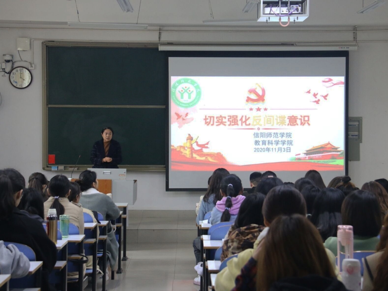 时间:2020-11-04 21:12:02 来源:太阳集团tyc539 作者: 阅读: 次11月3日下午,太阳集团tyc539在教科楼204教室组织开展《中华人民共和国反间谍法》学习教育活动,太阳集团tyc539全体员工党员、预备党员以及本期发展对象参与了此次活动。活动由张纪娥老师主持。
