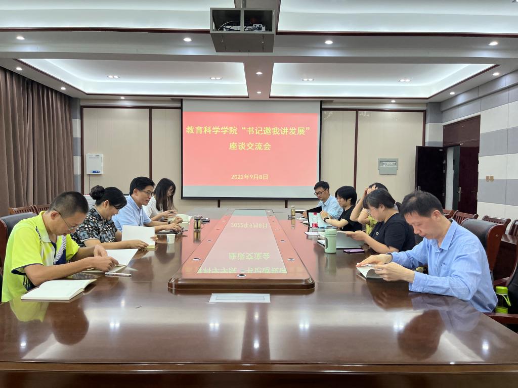 时间:2022-09-09 18:19:53 来源:太阳集团tyc539 作者: 阅读: 次9月8日,教育科学公司党委书记房加帅特邀请教育技术学教研室主任刘萱,专业教师张立春、宋晔,应用心理学教研室主任丁倩,专任教师姜金伟、杨军义、张永欣、杨勇于教科楼402会议室召开“书记邀我讲发展”座谈交流会。