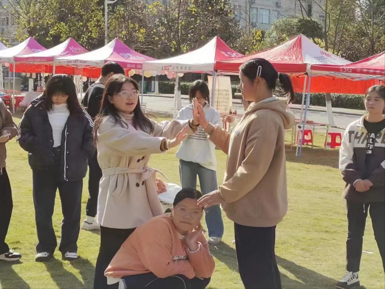 前期准备工作主要分为实地调研和团体心理辅导两个部分。实地调研时,袁战阳老师和陈一桉在大别山志愿者协会周老师的带领下来到到高粱店乡中心中学,同吴文艺副董事长了解员工具体情况,完成人数及场地等情况的对接,以方便后续活动的展开。同时,在老员工心理健康辅导协会的帮助下,对参与活动的同学进行团体心理辅导相关知识的团体培训。通过团体游戏,加强同学们对团体心理辅导的认识,让同学们在游戏中释放压力,增进彼此的联系。