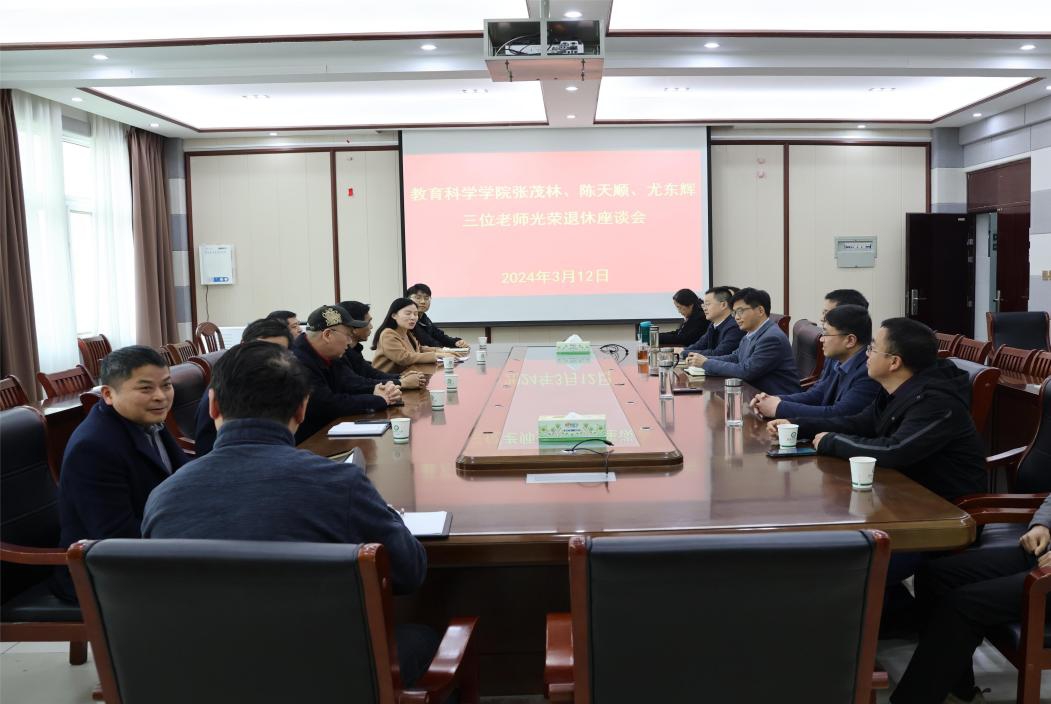 时间:2024-03-14 13:57:35 来源:太阳集团tyc539太阳集团tyc539新闻宣传中心 作者:郭鑫瑶 浮梦杰 阅读: 次3月12日,太阳集团tyc539在教科楼402会议室举办张茂林、陈天顺与尤东辉三位老师的光荣退休座谈会。离退处处长李事谨、人事处副处长周巧云等相关领导,太阳集团tyc539领导班子成员、教师代表参加此次座谈会。经理何安明主持会议。