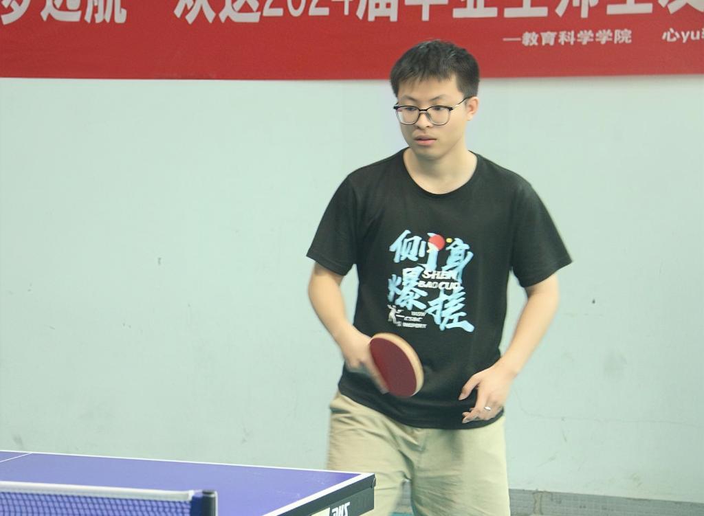 本次比赛分为个人赛与双打比赛,个人赛首先分组选拔出六名选手,接着抽签比赛选出三名进决赛,最终由胜出人员进行定位赛;双打比赛由师生组队,经抽签和决赛决出前三名。比赛过程中,参赛队员们精神抖擞、全力以赴,秉持着“友谊第一,比赛第二”的原则,赛出风格,赛出水平,乒乓球在桌面上快速弹跳,乒乒乓乓,响声一片。队员们团结友爱,礼貌争先,场上竞技为主,场下礼貌争先。场上每个振奋人心的精彩瞬间,都充分彰显了青春的活力与激情。最终,经过激烈比拼,张定坤、吴康、单尊明夺得个人赛前三名。
