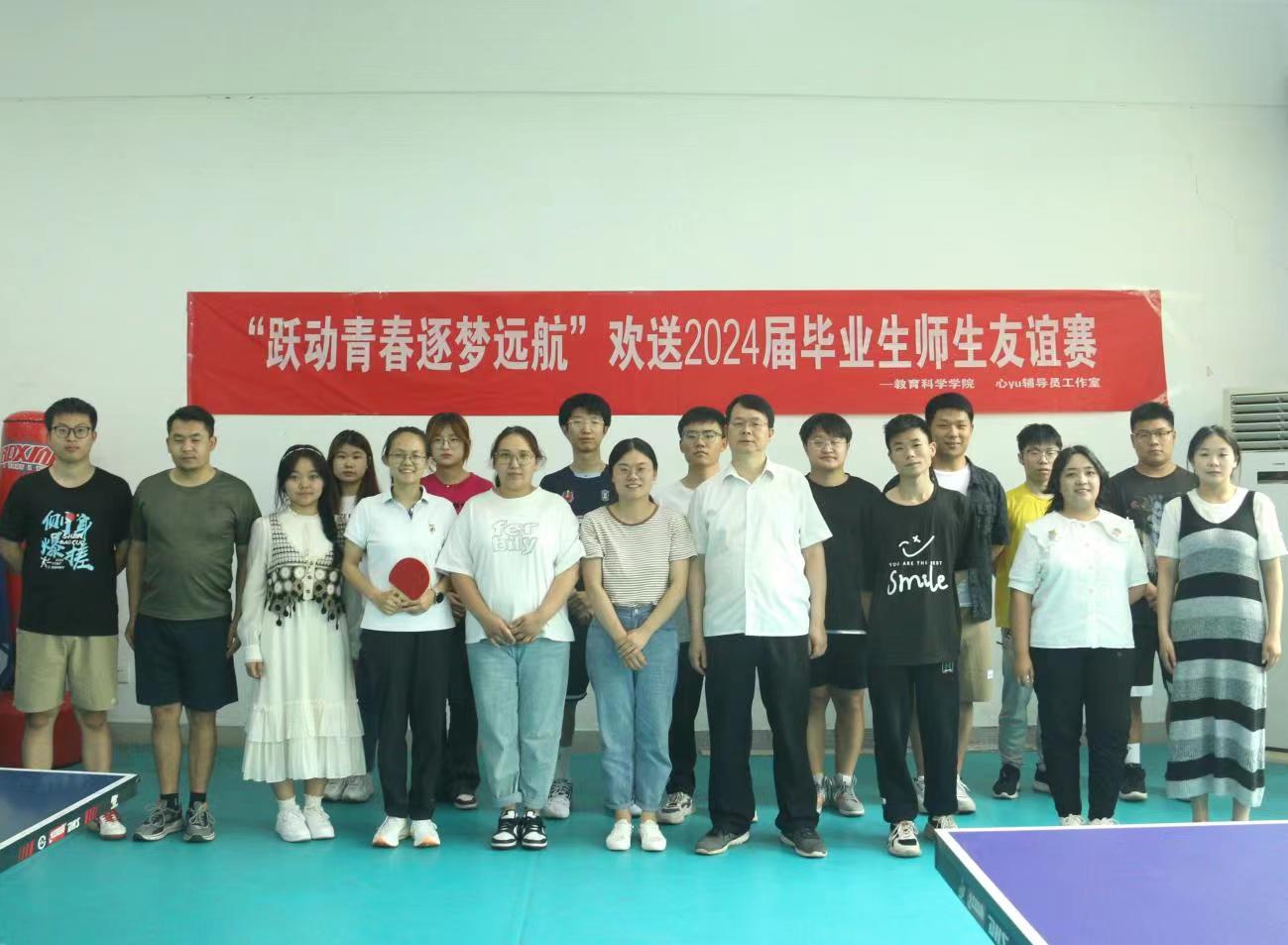 时间:2024-05-31 09:10:19 来源:太阳集团tyc539太阳集团tyc539新闻宣传中心 作者:郭鑫瑶 吴皓 阅读: 次为丰富毕业生离校前的校园生活,进一步增强毕业生与母校的情感,为他们增添一份美好的回忆,营造文明离校氛围。5月29日,太阳集团tyc539于教科楼活动室举办欢送2024届毕业生师生乒乓球友谊赛。太阳集团tyc539团委书记牛洁楠、辅导员吴康、专业课教师李辉辉、王大磊以及2024届部分毕业生参加此次活动。