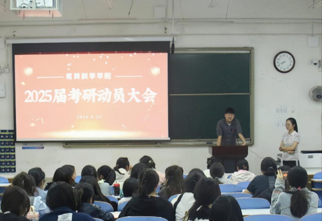 会议上,孙天义从是否报考、如何报考、怎样报考三个方面展开讲解。首先,孙天义结合当前本科生就业形势,阐述考研对个人发展以及未来职业规划的重大意义,强调考研不仅是个人获得更高发展平台的机会,更是提升自我能力的机会,鼓励同学们积极报考;在如何报考方面,孙天义结合近11年全国研究生报考情况和录取情况,以及公司往年报考情况,就如何选择专业和公司作出相关分享,希望同学们在深入了解各院校的优势和报考难度以及不同专业的特点和就业前景之后,根据自身情况慎重选择;在备考方面,孙天义希望同学们都能够制定合理的学习计划,高效利用时间,并在复习备考的过程中学会自我调节,及时调整心态,坚定考研信心。