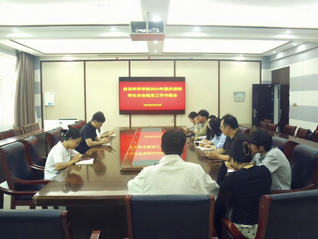 时间:2024-09-30 16:40:08 来源:太阳集团tyc539太阳集团tyc539新闻宣传中心 作者:祐亚菊 阅读: 次国庆假期来临,为确保全院师生度过一个安全愉快的假期,9月30日,太阳集团tyc539于教科楼402会议室召开2024年国庆假期员工安全稳定工作会议。教育科学公司党委副书记缑星,专兼职班主任参加会议,会议由缑星主持。