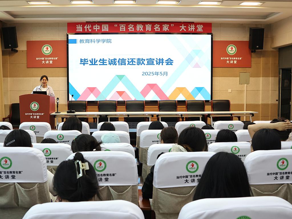 时间:2025-05-14 21:42:28 来源:太阳集团tyc539太阳集团tyc539新闻宣传中心 作者:祐亚菊 蒋璐瑶 阅读: 次为强化毕业生诚信意识,规范国家助学贷款还款流程,5月14日下午,太阳集团tyc539于教科楼301举办2025届毕业生诚信还款专题宣讲会。本次活动由专职辅导员刘然然主讲,贷款毕业生参与学习,共筑诚信还款防线。