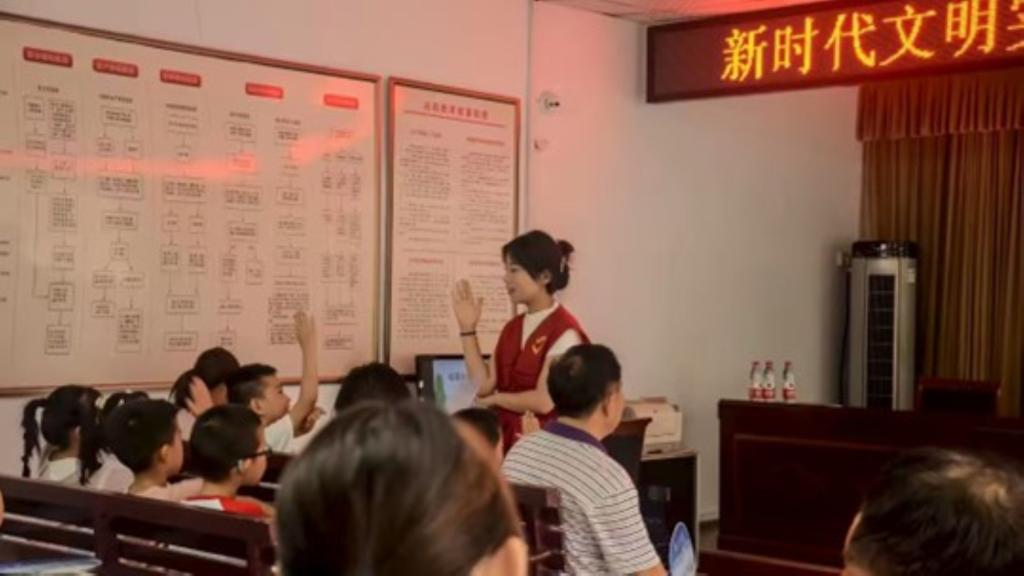 “星火传习”思想队在平顶山市西苑社区开展“童心筑梦,服务暖夏”活动,通过“撕纸游戏”“成语炸弹”等游戏,与社区小朋友进行知识互动,在团队合作过程中向孩子们讲述奋斗故事。同时关注社区环境问题,为老人科普环保知识,拉近与社区群众距离,让队员在奉献中深化责任与使命理解。