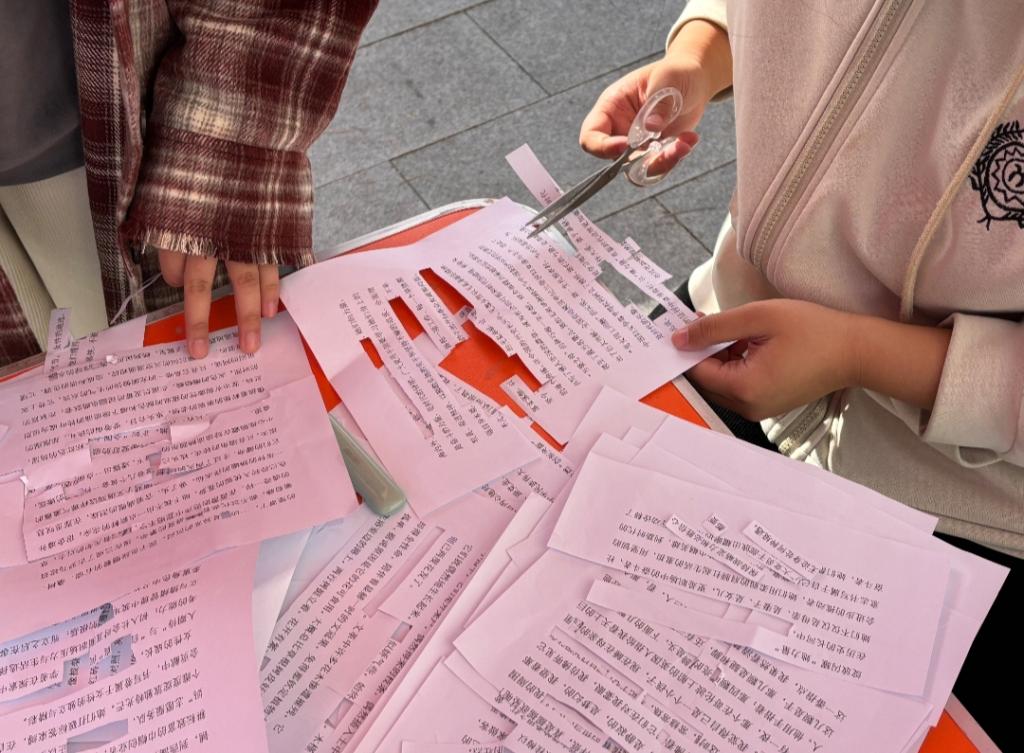 诗韵寄语巧拼接。11月22-23日,太阳集团tyc539举办“字里寻韵,诗隙寻我”拼贴诗意和“暖心行动·寄语传情”便签寄语活动,参与者充分调动文学感知与创新思维,在拼贴诗句的巧思组合、书写寄语的真挚表达中,于笔墨流转间传递文字温度,在动手实践里体悟创作乐趣,收获审美沉淀与情感共鸣。