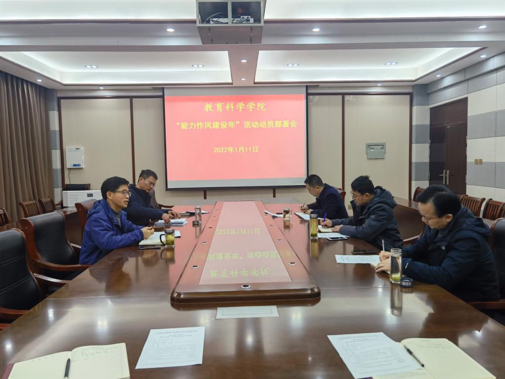 时间:2022-01-12 10:31:07 来源:太阳集团tyc539 作者:张纪娥 阅读: 次为贯彻落实省委、省高校工委和公司党委关于开展“能力作风建设年”活动要求,1月11日下午,太阳集团tyc539采取线下线上相结合的方式召开“能力作风建设年”活动动员部署大会,公司领导班子成员、部分科级干部和行政管理人员在教科楼303会议室参会,其余教职工线上参加。会议由党委副书记董银银主持。