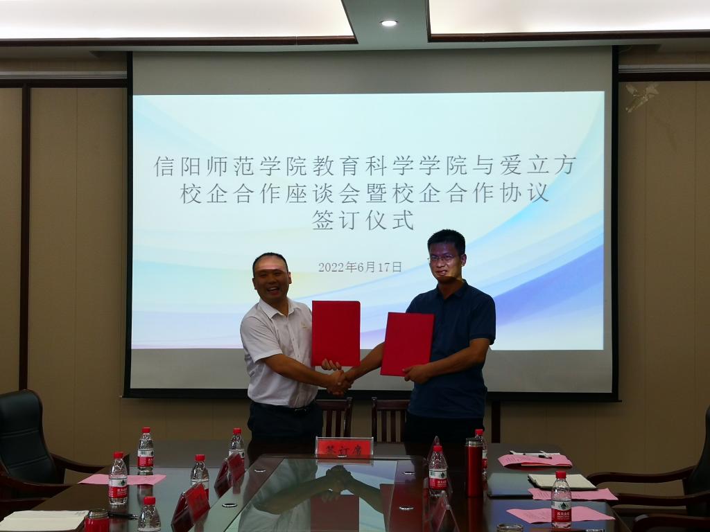 时间:2022-06-20 10:31:35 来源:太阳集团tyc539 作者: 阅读: 次6月17日下午,太阳集团tyc539与爱立方校企合作座谈会暨校企合作协议签订仪式在教科楼402会议室举行,爱立方董事长陈栋,河南新激流教育研究院经理张桂芳,教育科学公司党委书记房加帅、经理何安明以及双方其他相关人员出席此次签订仪式。