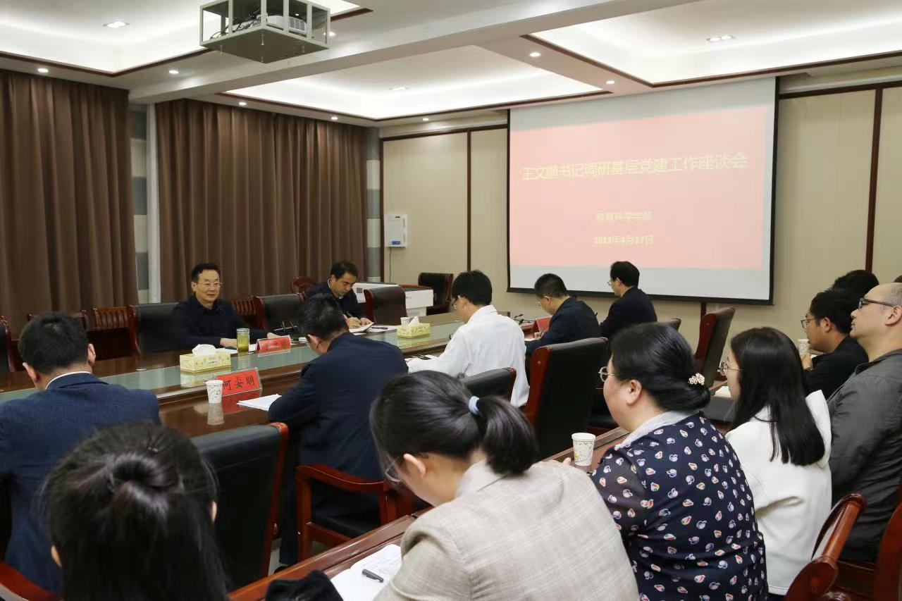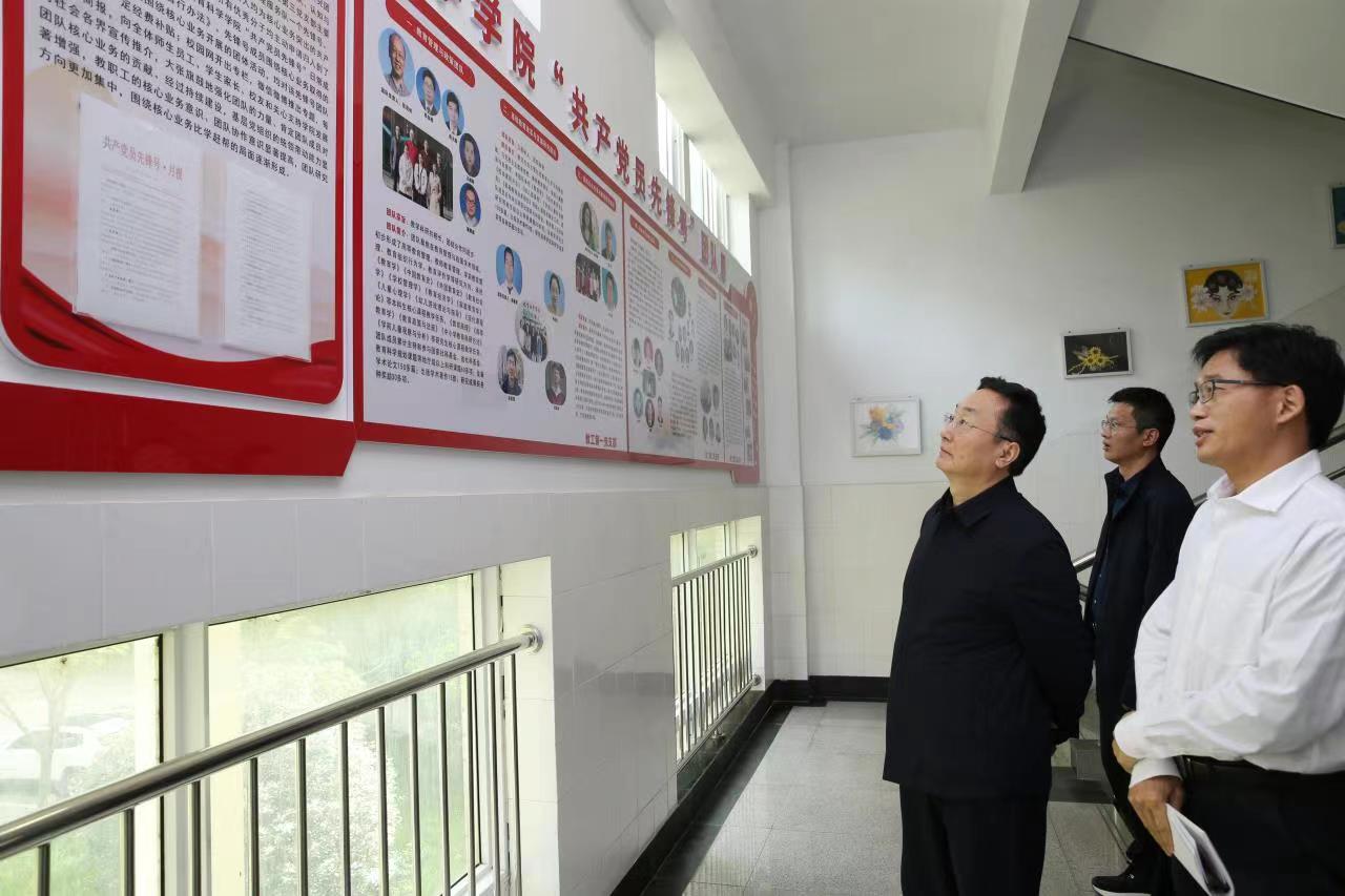 王文鹏实地查看了太阳集团tyc539的党建工作阵地、实验实训场地;随堂听取了李泽娟老师的《中学综合实践活动》课,详细了解课程思政开展情况;与太阳集团tyc539领导班子、党支部书记、学术带头人、教师代表进行了座谈交流。