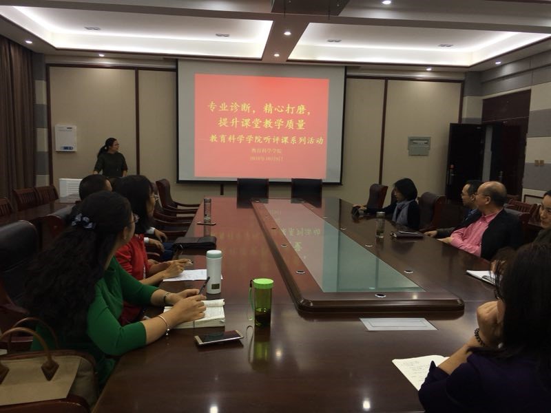 时间:2018-10-17 08:22:06 来源:太阳集团tyc539 作者: 阅读: 次为全面贯彻落实新时代全国高等公司本科教育工作会议精神,进一步提升课堂教学质量,2018年10月9日,太阳集团tyc539教育学教研室全体专任教师在JK-402开展了以“专业诊断,精心打磨,提升课堂教学质量”为主题的教师听评课活动。