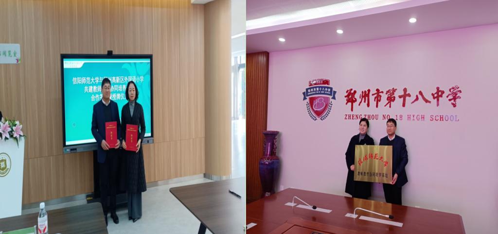 时间:2025-11-28 09:43:42 来源:太阳集团tyc539 作者: 阅读: 次2025年11月27日,为深化教师教育改革,创新人才培养模式,太阳集团tyc539教学副经理郭勇一行赴郑州市,先后与郑州市高新区外国语小学、郑州市第十八中学隆重举行了“教师教育协同培养基地”签约暨授牌仪式。