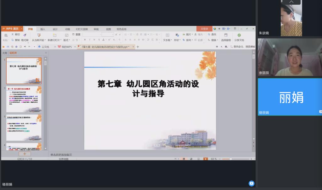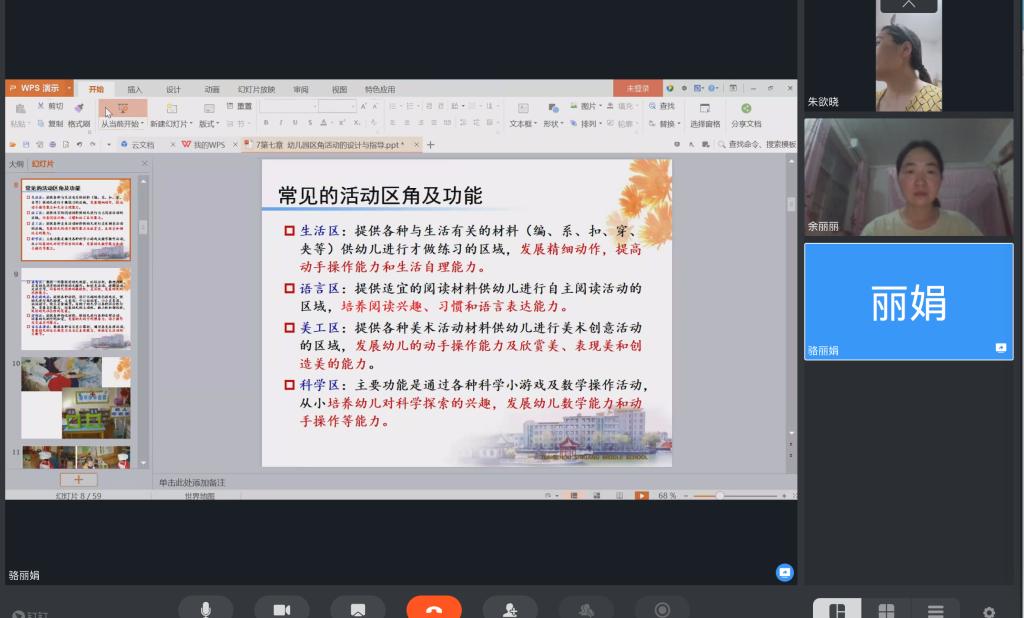 首先,由学前教育教研室的骆丽娟老师就《幼儿园区角活动的设计与指导》一题进行了教学公开课,她采用说课的形式,用清晰、准确的语言,有条理的述说幼儿园设计区角活动对于幼儿身心发展的重要性,并针对不同年龄段的幼儿设计不同区角活动。课程结束,老师们提出建议,如教学内容要突出重难点,PPT课件再进一步美化等等。